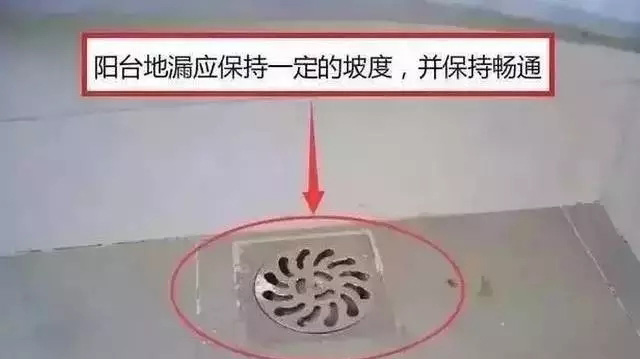 1,阳台、卫生间的地漏需要保持一定的坡度,这样干得快,并且要做到不积水。